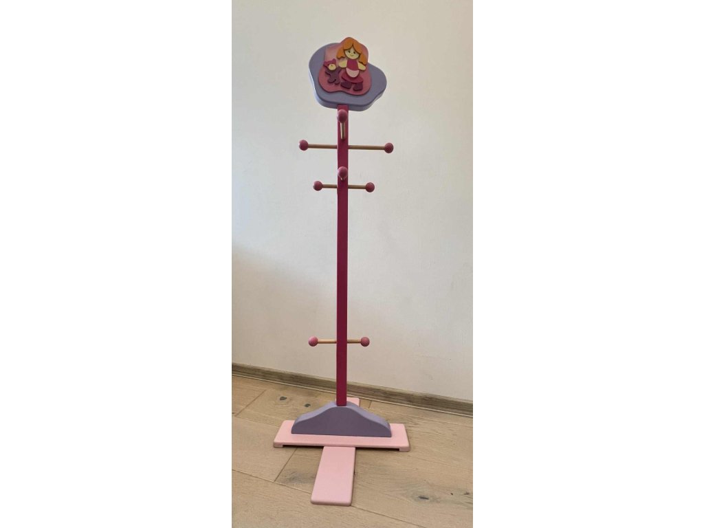 Dodejte svému interiéru šmrnc a eleganci s dětským věšákem – němým sluhou, který je nejen praktickým, ale i designovým doplňkem. Tento jedinečný kousek o rozměrech 130 × 40 cm je vyroben z kvalitního masivního dřeva a zdoben motivem holčičky v růžových a fialových tónech, které působí romanticky a zároveň moderně.