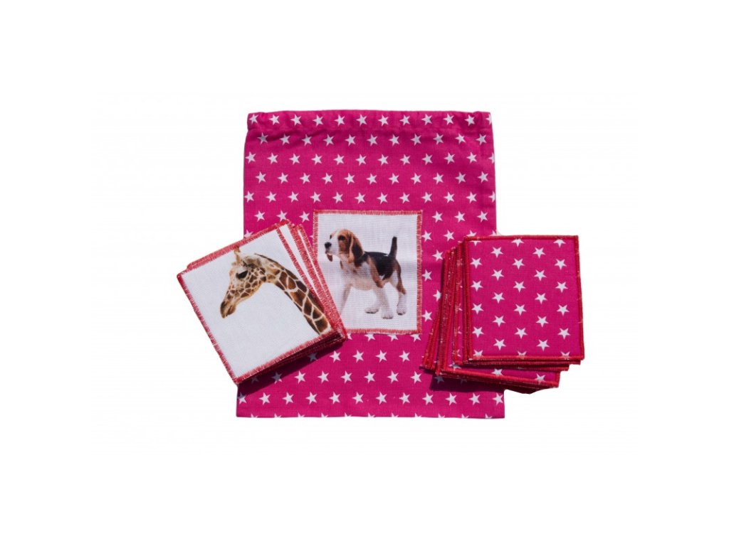 Textilní pexeso – Zvířátka (tmavě růžové s hvězdičkami)